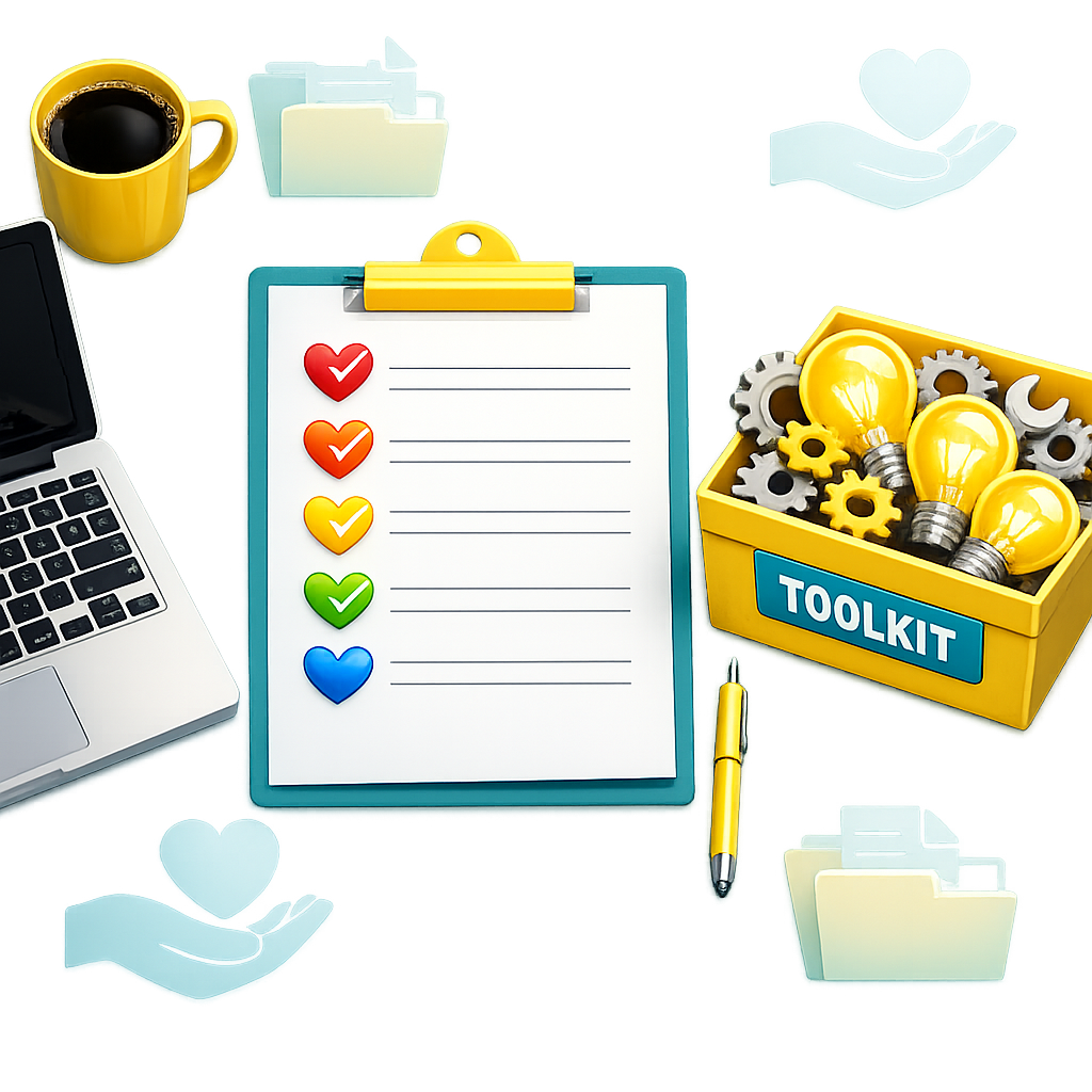 Gathering and organizing helpful materials, tools, and articles for easy access and use by those affected by dementia.